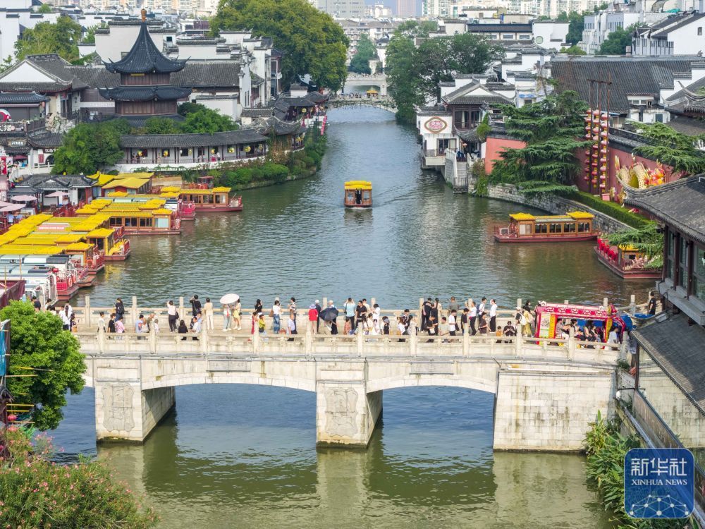 ↑10月5日,人们参观了南京(Nanjing)孔子寺的风景秀丽(无人机照片)。新华社国会期间的国庆日和总理,中国陆地车辆,媒体(什叶派照片)...